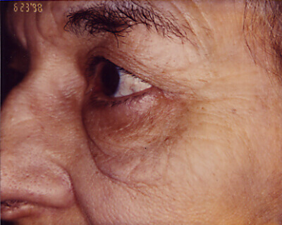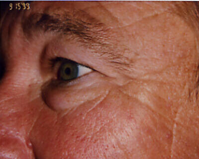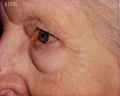 When one speaks of baggy “eyelids” he or she may be referring either to the upper or the lower eyelids, or both. Baggy upper lids can result from either genetic predisposition, or may be age related; or both. This problem can be expressed as too much skin or even wrinkled skin (especially in the lower lids), bulging fat, or both. Upper eyelid bags can also occur if the brow above droops to a point where it pushes the upper eyelid skin down onto the eyelashes. Baggy upper eyelids can in extreme cases fall over the lashes and block the pupil of the eye thereby causing visual loss.